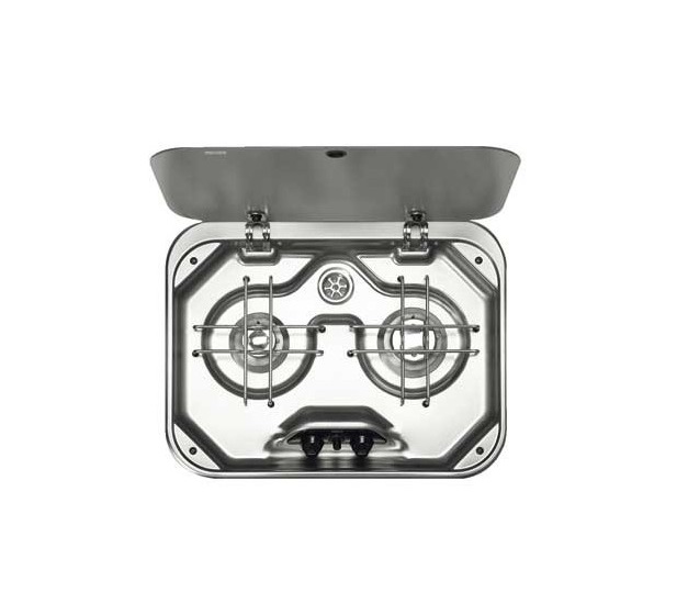Eingebauter 2-Flammen-Herd aus gebürstetem Edelstahl mit Thermosicherheit und