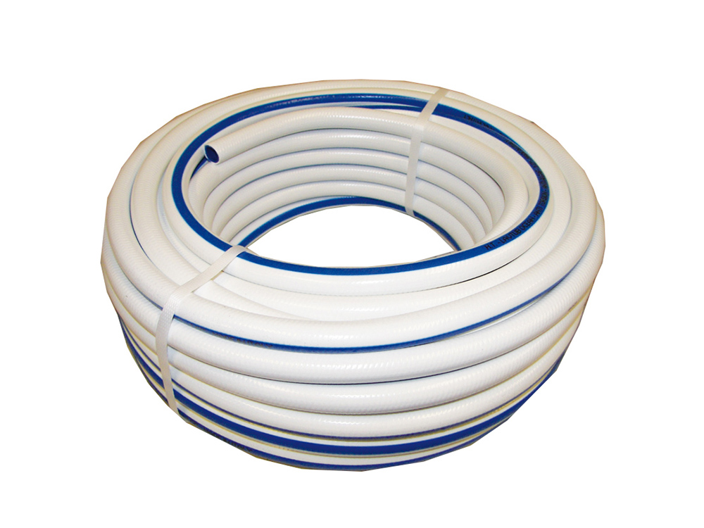 Ungiftiger flexibler PVC-Schlauch mit doppelt gestrickter Textilverstärkung (TRICOT) mit hoher Verwindungssteifigkeit. Beständig gegen Witterungseinflüsse und die meisten Chemikalien. Betriebstemperatur von -10 ° bis + 60 ° C. Betriebsdruck 10 bar. Ideal zum Waschen des Bootes oder für verschiedene Zwecke.