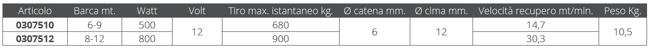 500W, 12V, Max. Momentankraft 680 Kg., Ketten-Ø mm. 6, oberer Ø mm. 12, Wiederherstellungsgeschwindigkeit 25,5 m / min, Gewicht 10,2 kg.
