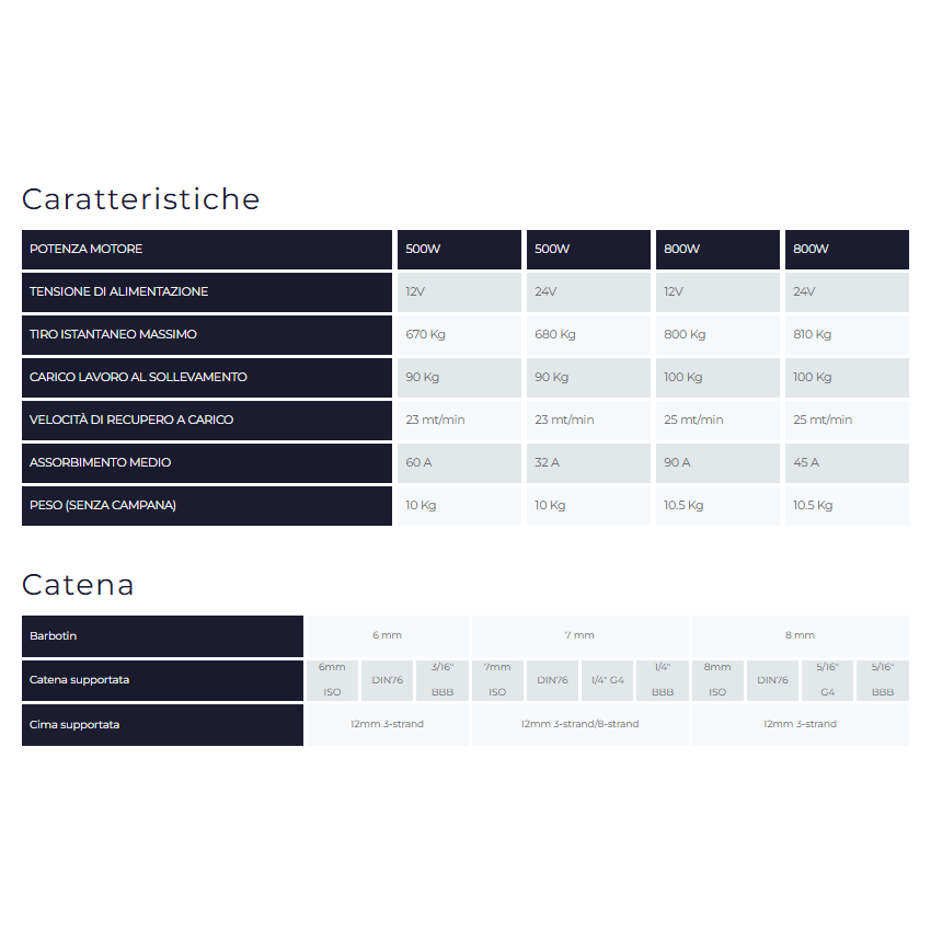 Die SMART-V Ankerwinde kann 6 mm oder 8 mm Ketten verwenden. Alle Modelle sind mit einem Spannsystem ausgestattet.