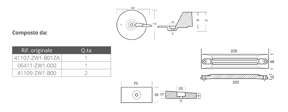 Aluminiumanoden-Kit für Honda BF 75-90-115-130 Motoren