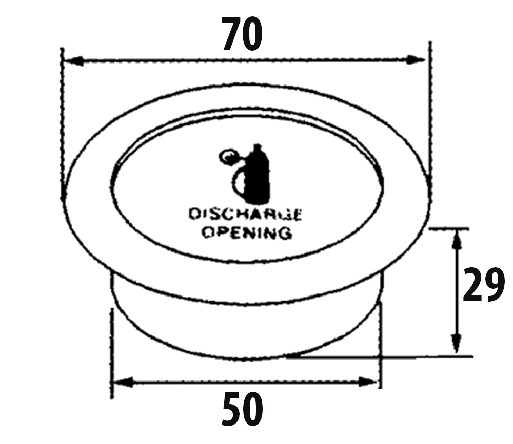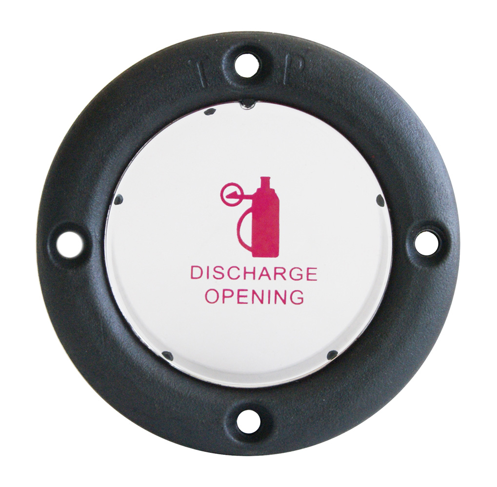 Feuerfester Ring aus Nylon und Acryllinse mit Edelstahlabdeckung. Am Motorraum montiert ermöglicht er im Brandfall das Betreten mit dem Feuerlöscher ohne ihn öffnen zu müssen, abgedunkelt. Außen-Ø mm. 70, Ø Loch mm. 50, Einbau 29 mm