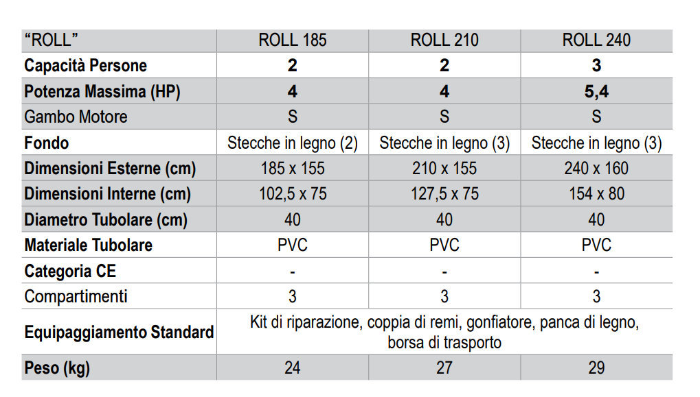 Ausgestattet mit großen Rohren und einem durch große und robuste Rippen versteiften Boden erweist sich die Roll-Linie als ideale Wahl für diejenigen, die die Praktikabilität lieben, aber nicht auf maximale Sicherheit auf See verzichten möchten. Sie lassen sich auch leicht zusammenrollen, ohne dass eine Montage / Demontage erforderlich ist. Sie können überall verstaut und in einer praktischen Tasche transportiert werden, die mit dem Tender geliefert wird. Einfach im Auto, in einem Wohnmobil oder in einem Schließfach zu verstauen.