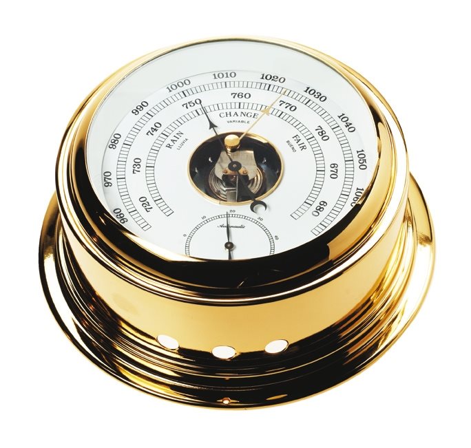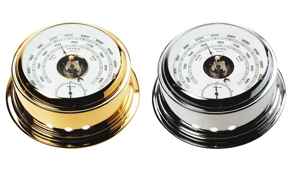 Autonautisches Barometer und Thermometer der Serie Mittelmeer B220, von großem ästhetischem Wert, um sich gut an größere Boote oder in Häusern anzupassen, in denen nautische Einrichtungen bevorzugt wurden.