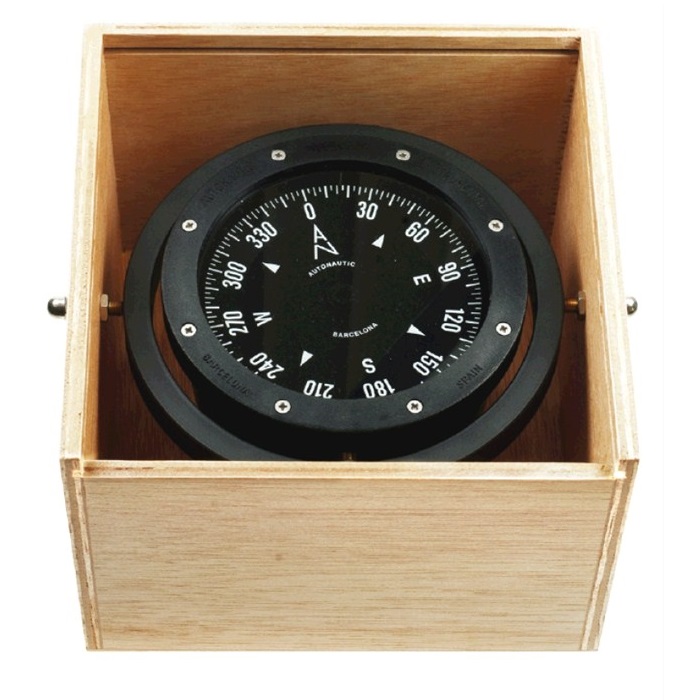 Kompass für Rettungsboote auf See als Kompass für Respekt. Es ist mit einem sehr robusten Gehäuse ausgestattet, das es gut vor magnetischen Störungen an Bord schützt. Diese Abschirmung wird auch durch den Holzbehälter erweitert.