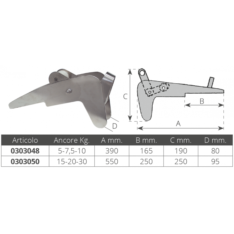 Art. 0303048 dim. mm. Lunge. 390 x Breite 80 Stützflächenlänge. 165 mm für 5-10 kg Anker.