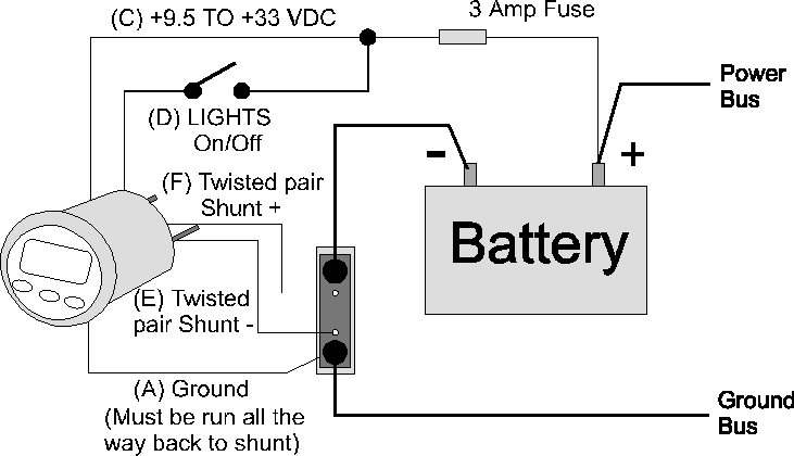 Einstellungen wie Hintergrundbeleuchtung und Alarmwerte werden in einem nichtflüchtigen Speicher gespeichert. Das Instrument wird mit einem 150 Ampere SH-150 Shunt zur Strommessung geliefert. Alle Kalibrierungen werden vom Haus aus durchgeführt, der Benutzer kann sie jedoch nach Bedarf ändern