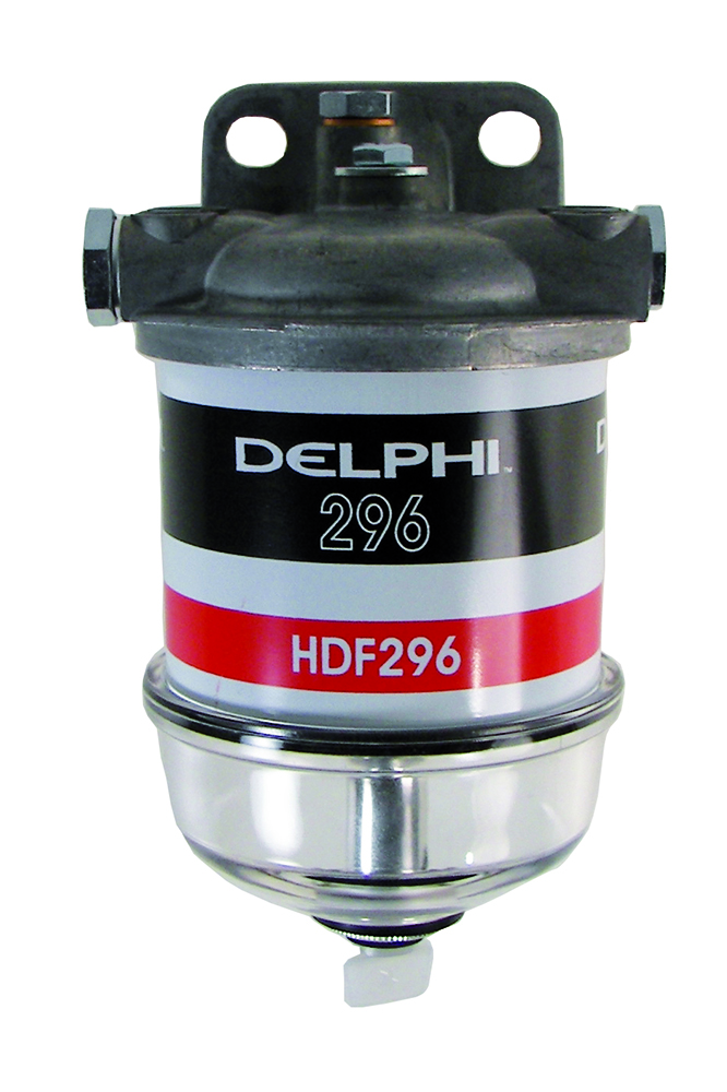 Leichter Dekanterfilter aus Druckgusslegierung / Diesel, Entlüftungsschraube, 2 Einlässe, 2 Auslässe. Durchflussrate 50 lt./h. Komplett mit 2 Kappen, F Gewinde von mm. 14x1,5. Dim.mm. 170 x 93 x 93