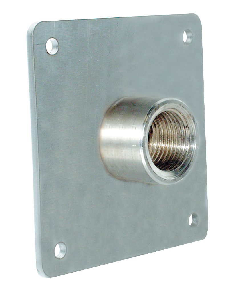 Platte und Gewindehülse aus Edelstahl AISI 316. Ideal für die Herstellung von zwei Schottschläuchen für den Durchgang von Flüssigkeiten und Gasen zwischen den verschiedenen Hohlräumen. Plattengröße mm. 80x80, mit 4 Befestigungslöchern