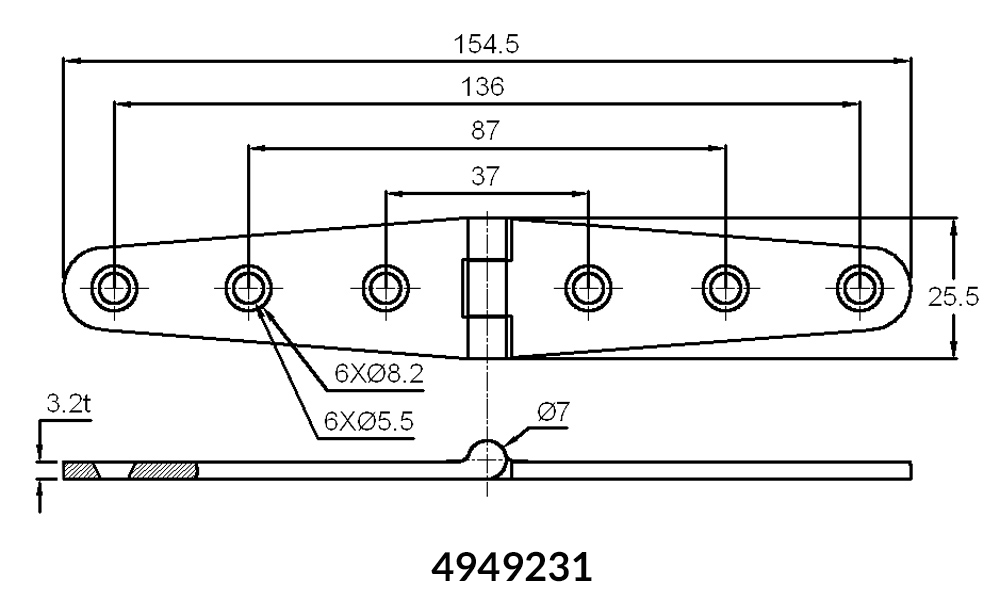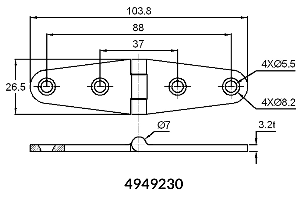 Scharnier herausragender Kern 2 mm 70x38 mm