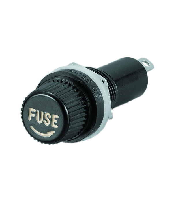 Sicherungshalter Max 10A, Schraubverschluss, versilberte Messingkontakte, Gehäuse aus Makrolon mit Glasfüllung, Loch Ø mm. 16. Für Sicherungen (Art. 3939120 bis 126) aus Glas mit Ø 6,3 mm x Länge 32 mm.