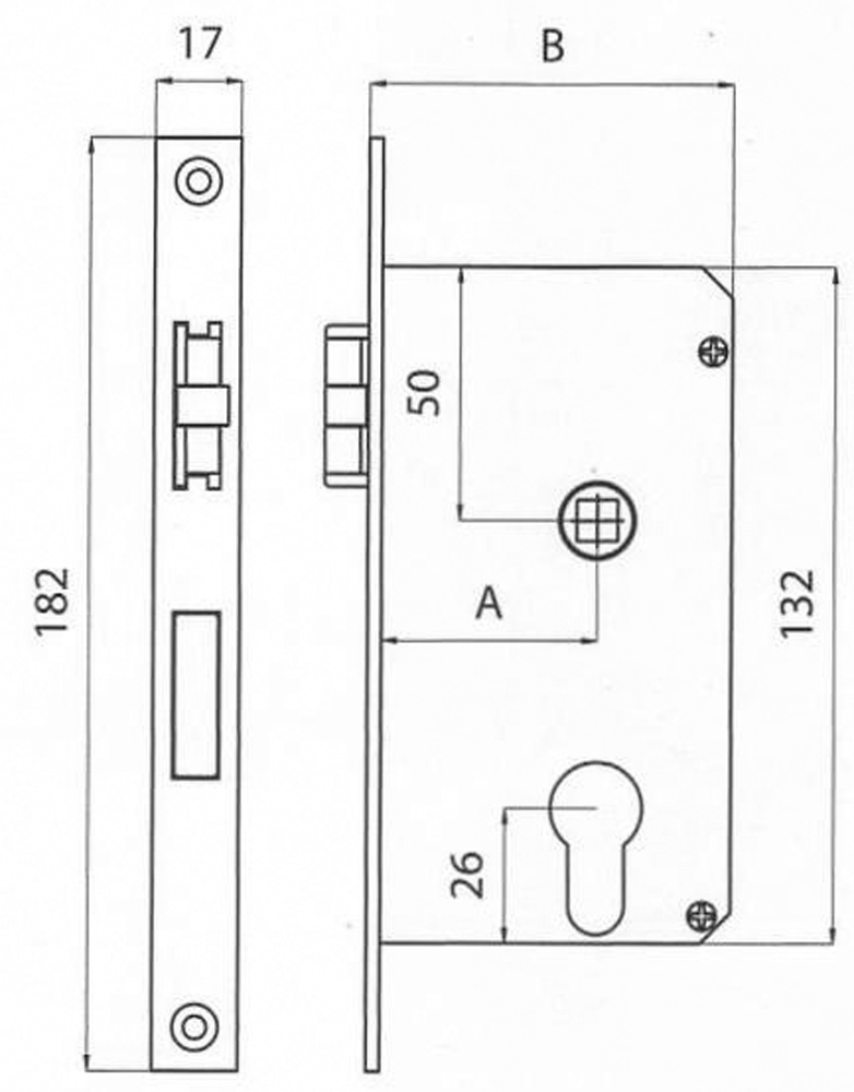 Schloß, rechts ohne Klinke 80x70 mm