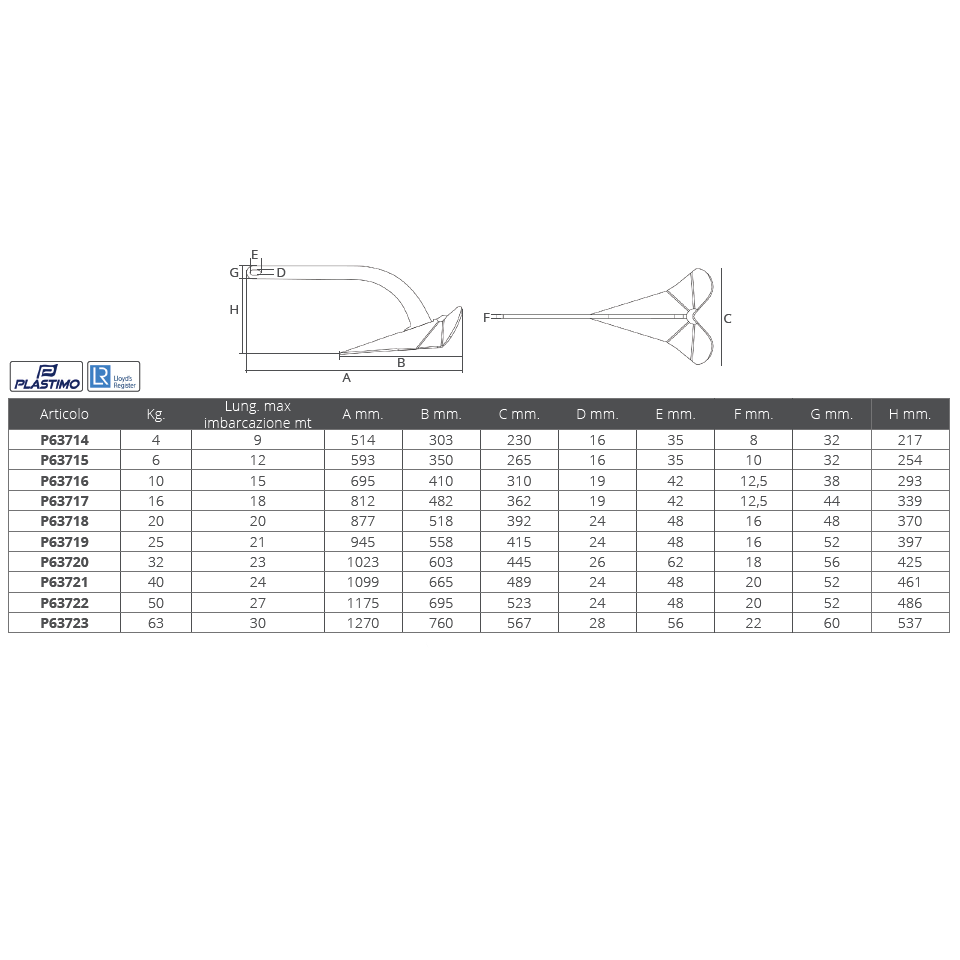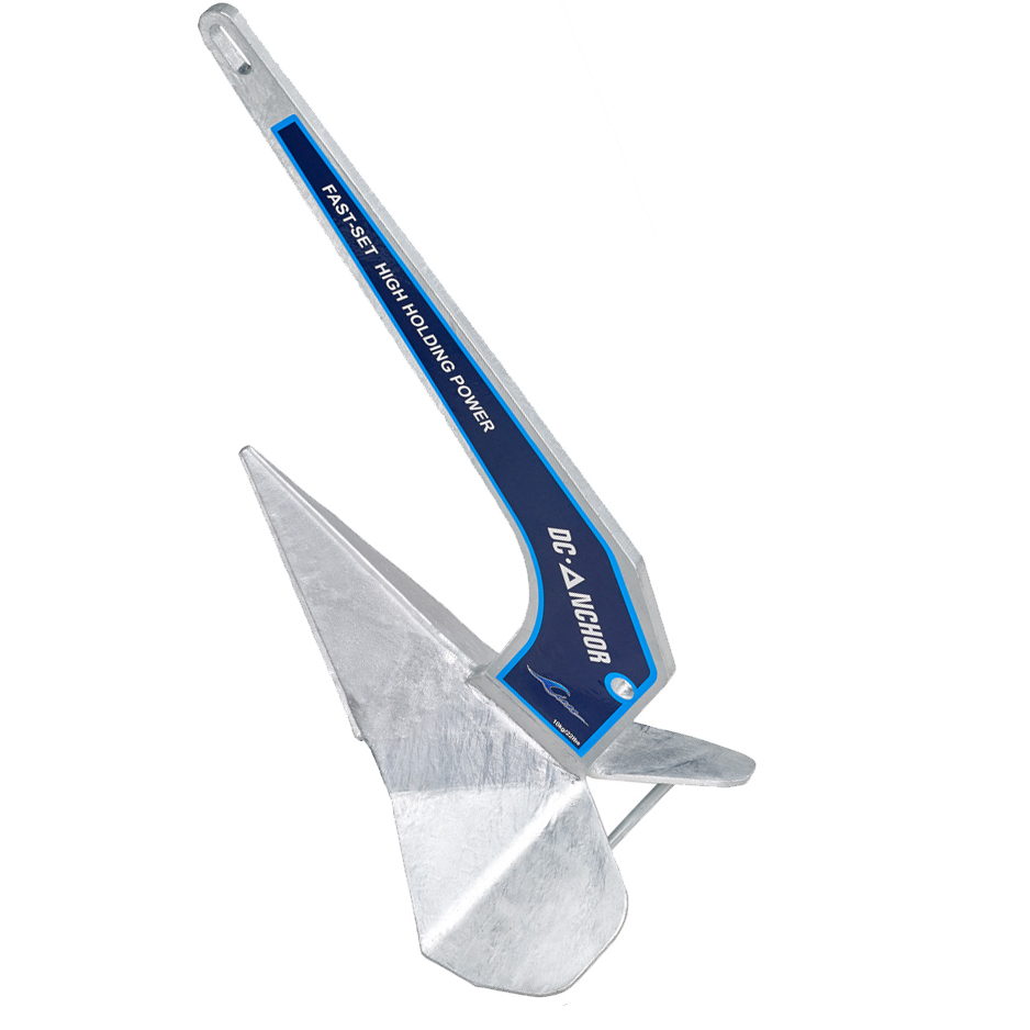 DC-Pflugschar Anker aus verzinktem Stahl mit ballastierter Spitze mit hoher Durchdringung und Abdichtung auf jedem Meeresboden (einschließlich Algen), schnell wieder Halt, wenn das Boot beim Rotieren zum Schiff neigt. Für Boote bis 9 Meter.
