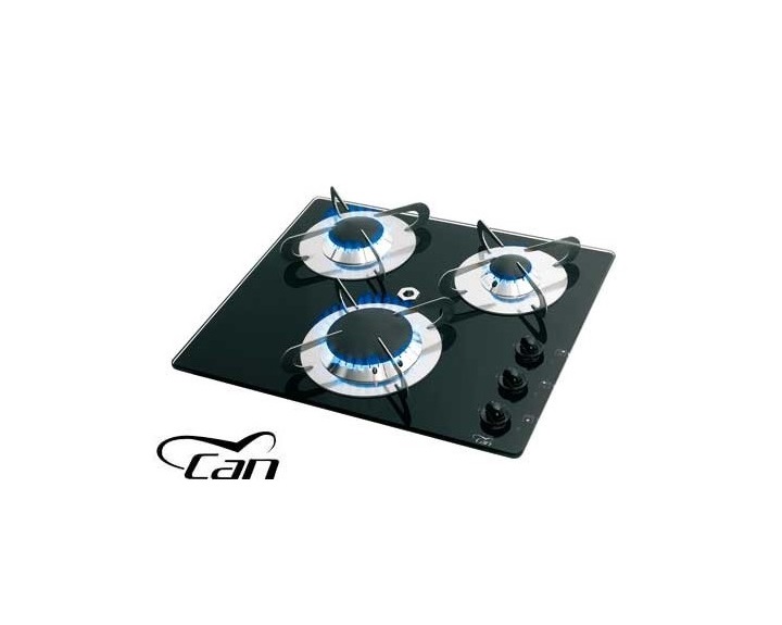 Eingebauter 3-Flammen-Herd mit gehärtetem Glas und thermischen Sicherheitsvorrichtungen.