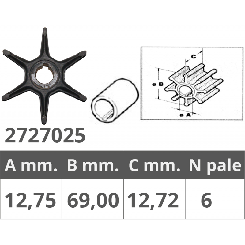Ref. 375638/775518 für 2T 10-15-18-20-25 PS Motoren, Abm. Ø innen 12,7 mm Ø außen 69 mm Dicke 12,8 mm, Nr. 6 Klingen