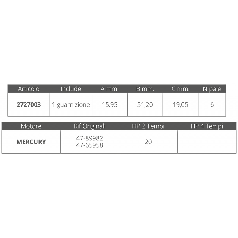Ref. 47-89982, 47-65958 für 20 PS 2-Takt Motoren, Abm. Ø innen 16 mm Ø außen 51,5 mm Dicke 19,05 mm, Nr. 6 Klingen