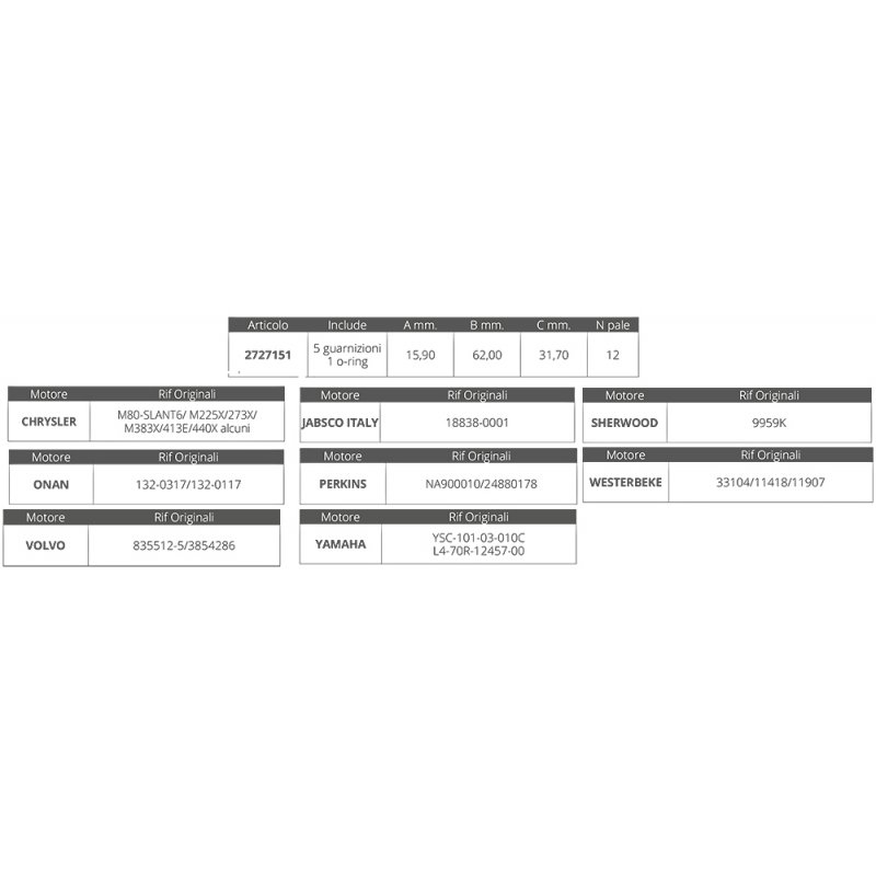 Abm. Ø int.mm 15,9 Ø außen 65,2 mm Dicke 22 mm, Nr. 12 Klingen, WESTERBEKE Ref.-Nr. 33104/11907