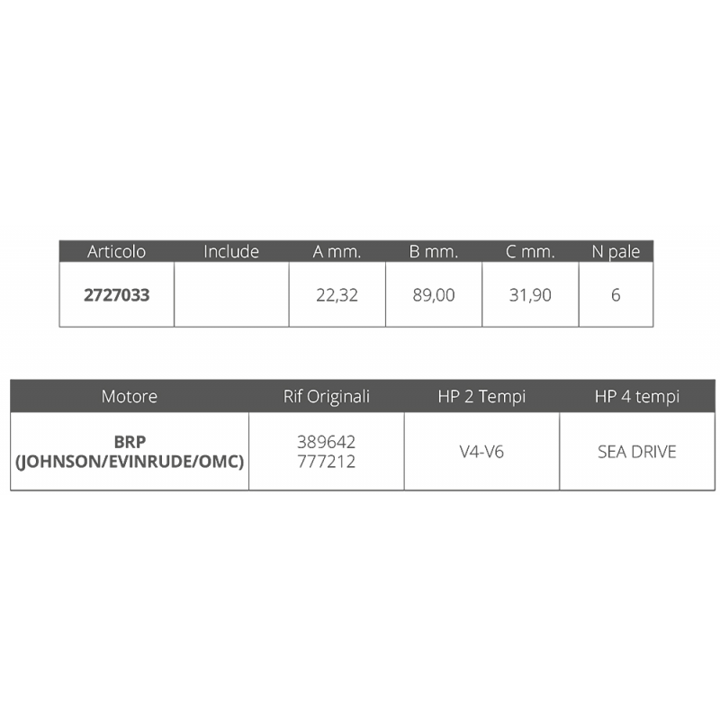 Ref. 389642 für 2-Takt V4-V6 Motoren, Abm. Ø innen 22,32 mm Ø außen 89 mm Dicke 31,9 mm, Nr. 6 Klingen