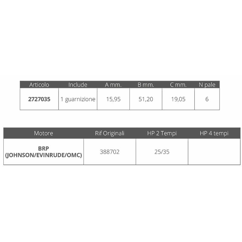 Ref. 388702 für 2T 25 PS Motoren, Abm. Ø innen 16 mm Ø außen 51,5 mm Dicke 19,5 mm, Nr. 6 Klingen