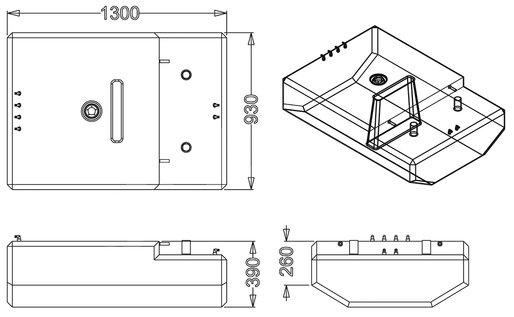 Starrer Kraftstofftank aus vernetztem Polyethylen mit neutraler Farbe, CE-zertifiziert, ausgestattet mit Universal-Füllstandssensor 10-180 Ohm und 240-33 Ohm, Einsätze zum Einsteigen, Entlüftungs-Ø mm. 16, Saug- und Rücklauf Ø mm. 12