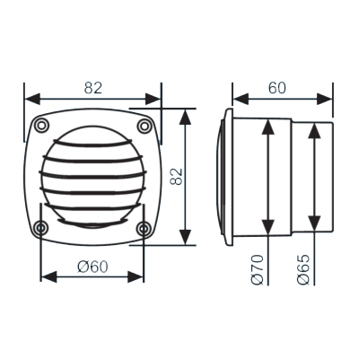 Konzentrische Lüftungsgitter m.3 Schrauben