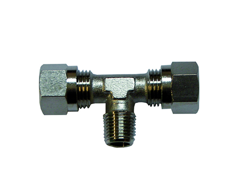 T-Stück 1/4 Gas Messing vernickelt Fitting Art.-Nr. 4344508 für Kunststoffrohr Ø mm. 6x8, Kupferrohr Ø mm. 8 Kunst. 4344509 für Art.-Nr. 43.44500 / 501 oder Kupferrohr Ø mm. 10 Kunst. 4344510 T-Stück 3/8 Gas Messing vernickelt Fitting für Kupferrohr Ø mm. 12