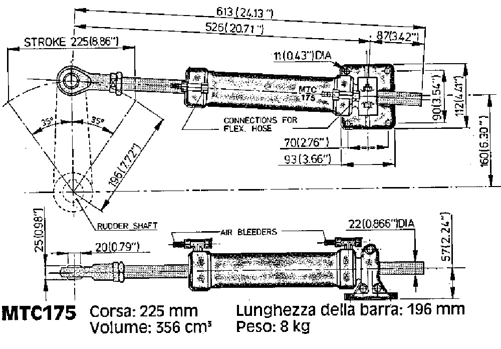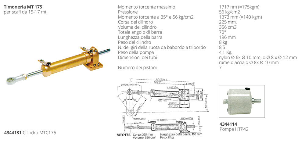 MT 175 Zylinder für Vetus hydraulisches Lenksystem für Innenbordmotoren für Rümpfe von 15-17 Metern.