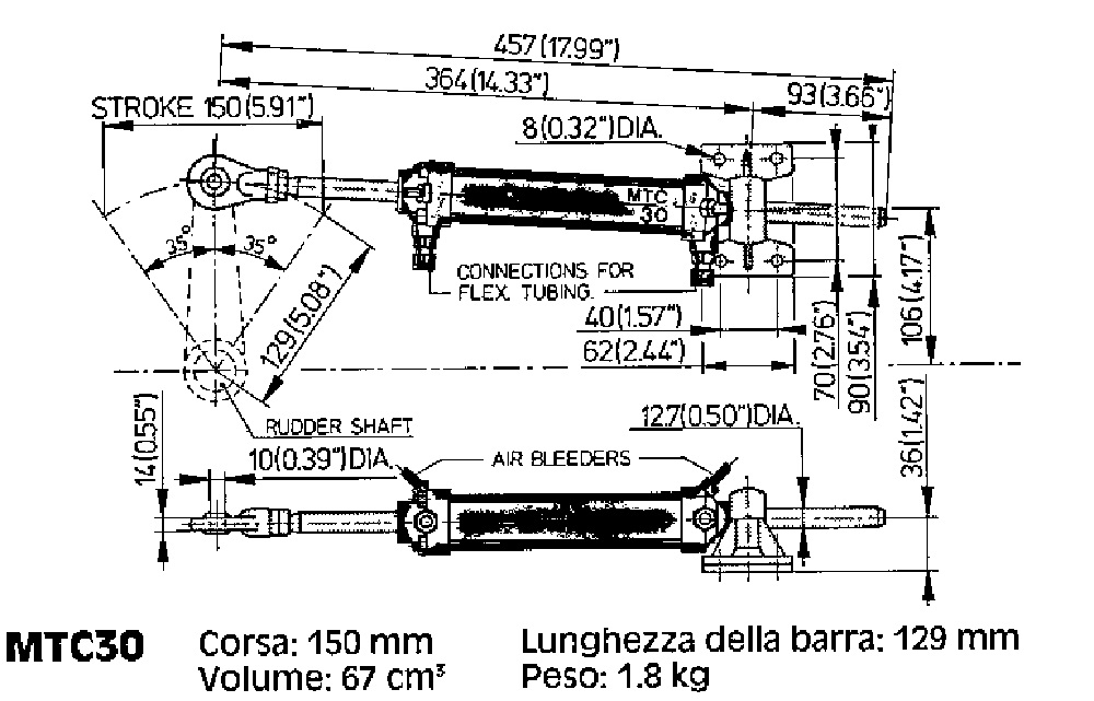 Vetus MTC30 Zylinder für hydraulische Lenkung