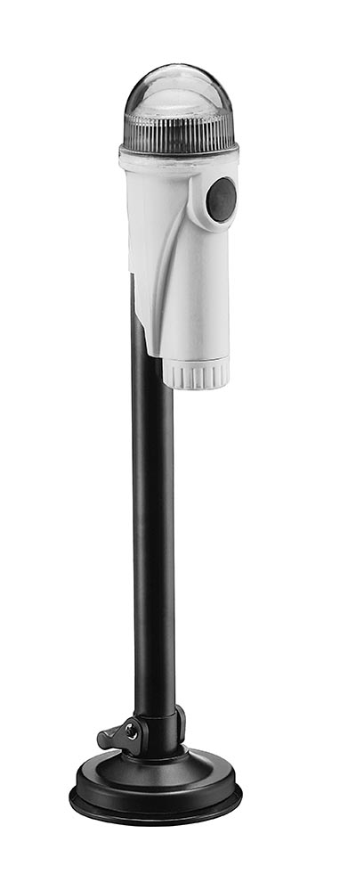 Wasserdichte 360 ° weiße LED-Straßenlaterne aus ABS für Boote und Druckluftjacken. Funktioniert mit 3 Batterien nicht im Lieferumfang enthalten. Saugnapfbefestigung, Höhe cm. 38
