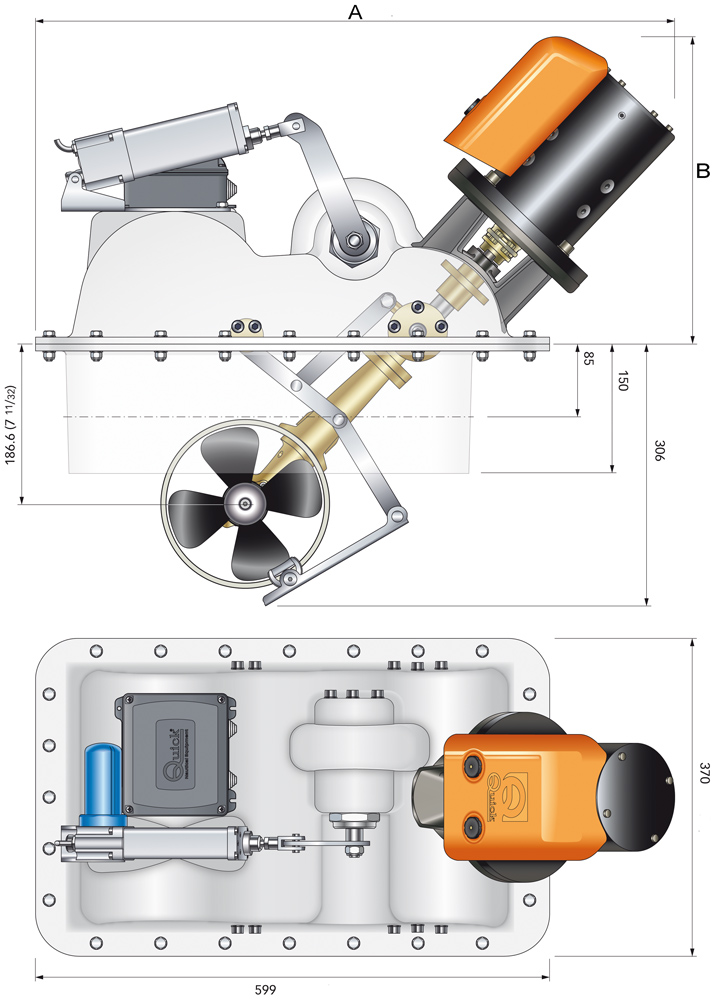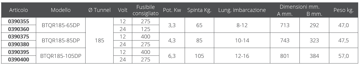 Bugstrahlruder für Boote 12-16 mt., Tunnel Ø mm. 185, 12V, Sicherung 400A, Leistung 6,3 kW, Schub 105 kg, Gewicht 57 kg.