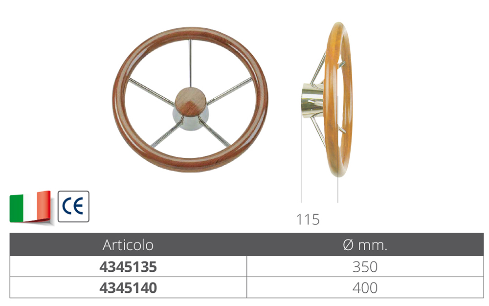 Lenkrad mit Griff aus Teakholz, Nabe und Speichen aus Edelstahl, mm vorstehend. 115, Universalkegel