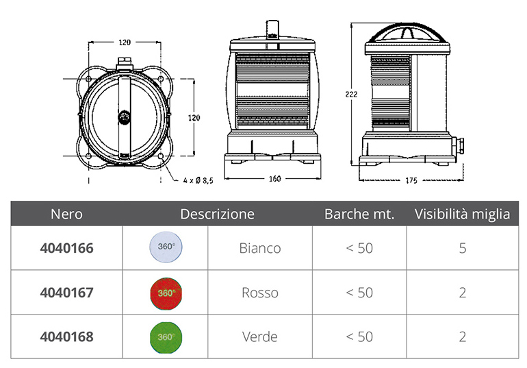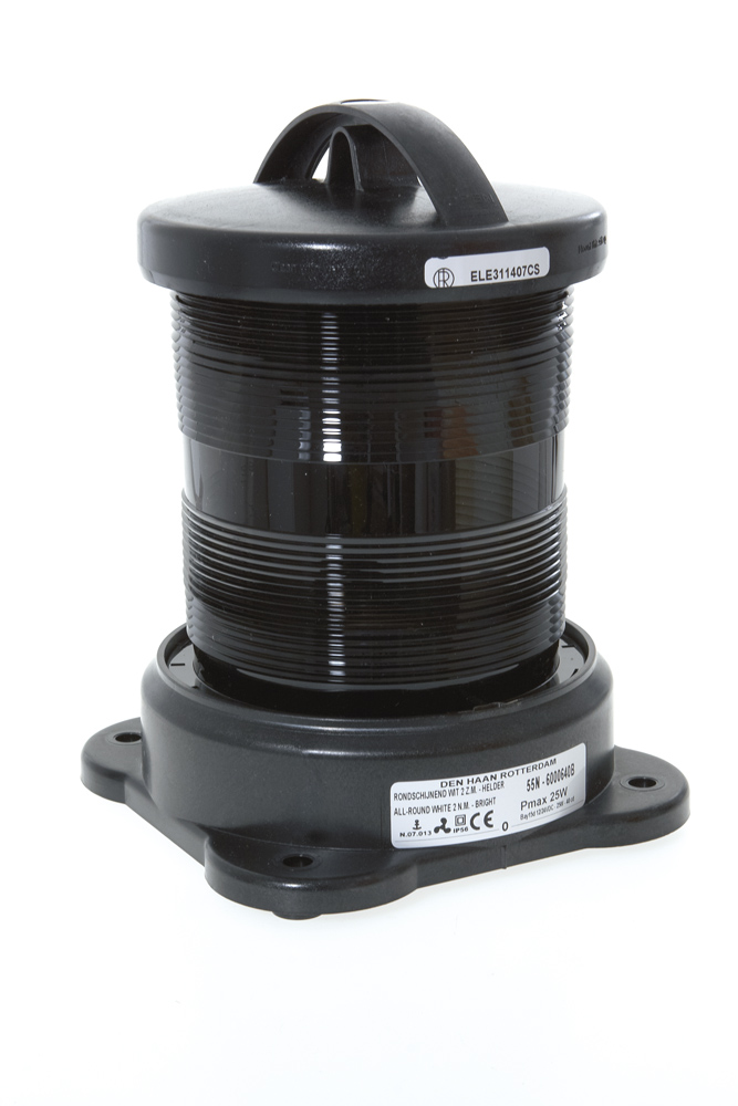 RINa-zugelassene Straßenlaternen. und MED 96/98 - EC für Berufsboote aus schwarzem Polycarbonat, komplett mit Homologationszertifikat in der Leuchte. Lieferung ohne Glühbirne.