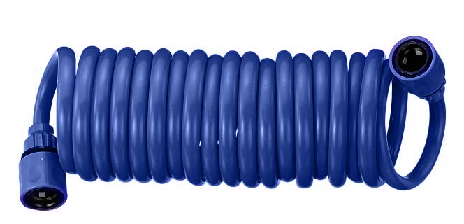 Spiralschlauch aus thermoplastischem EVA-Material mit Anschluss für den Anschluss an das Wassernetz.