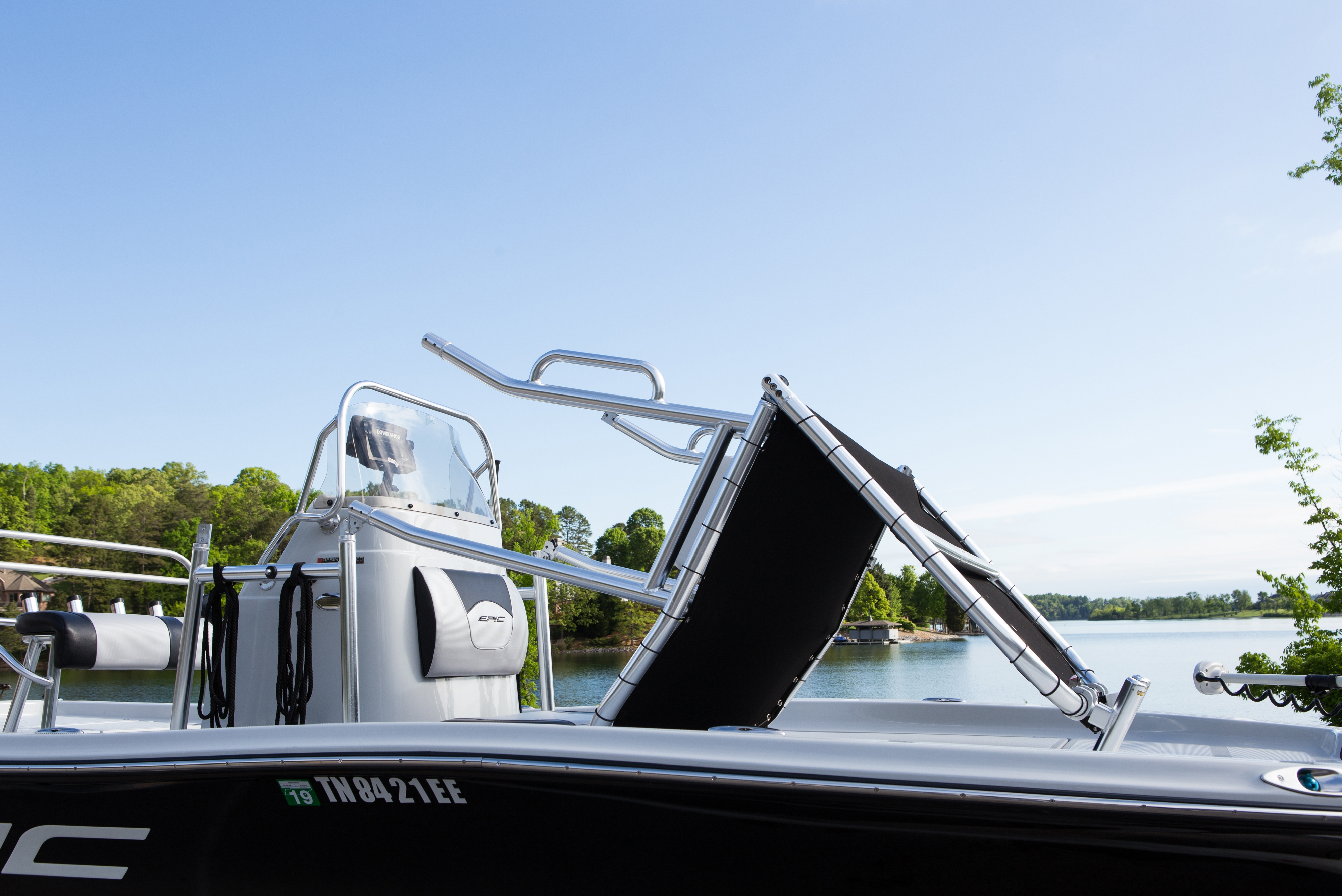 aus poliertem und eloxiertem Aluminium passt er auf jedes Boot mit einer 60 oder 130 cm breiten Mittelkonsole.