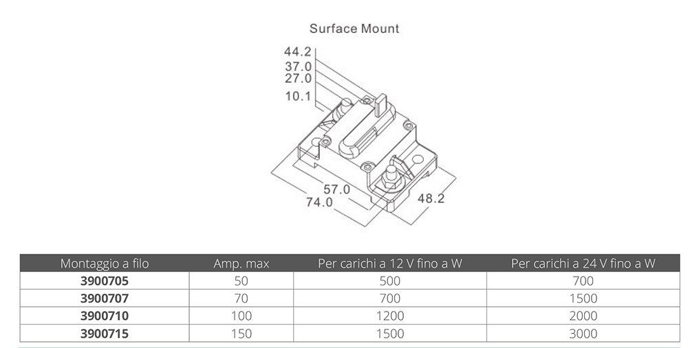 Einpoliger Thermoschalter für Hochleistungsanwendungen wie Ankerwinden, Winden, Festmacher und Manövrierpropeller. Zinn und versiegelt für den Einsatz in Maschinenräumen oder Bilgen. Maximale Spannung 42 V. Ausgestattet mit einem Rücksetzmechanismus, der den Zustand des Schalters anzeigt. Konform mit SAE J 1625.