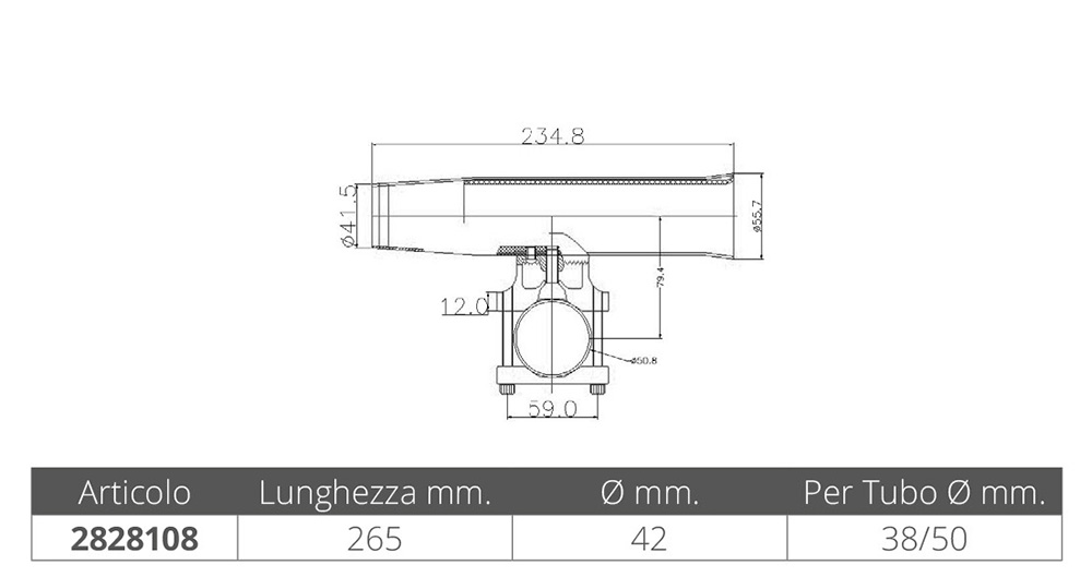 Angelrutenhalter Rohr u.Grundplatte AISI316 46 mm