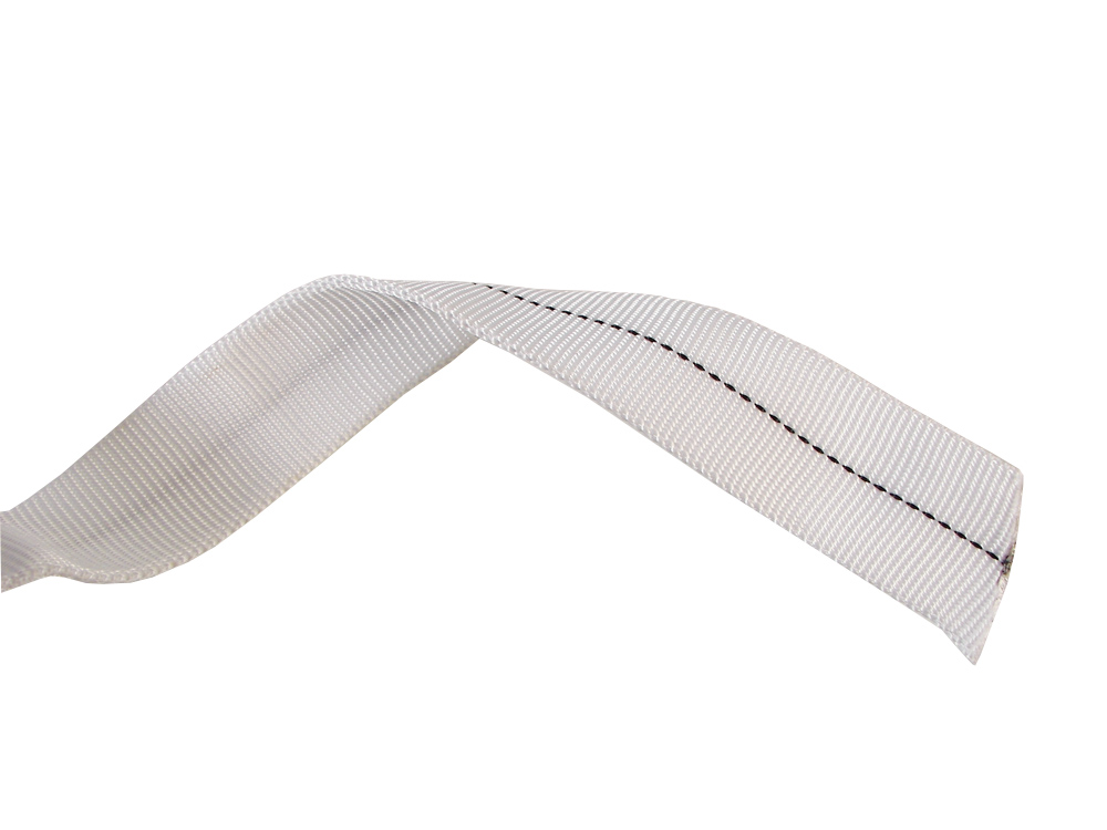 Schlauchband aus weißem Polyester mit blauem Marker, weich und widerstandsfähig, ideal für Rettungsleinen und verschiedene Anwendungen